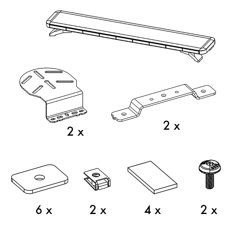 Bemærk også, at det monteringsmateriale, der følger med hvert sæt, er beregnet til montering på karosseriet. Beslag til ikke indgribende installationsmetode i gulv og vægskinner leveres separat.