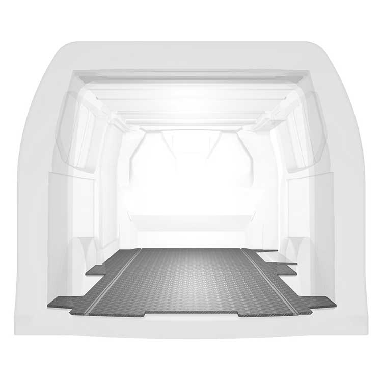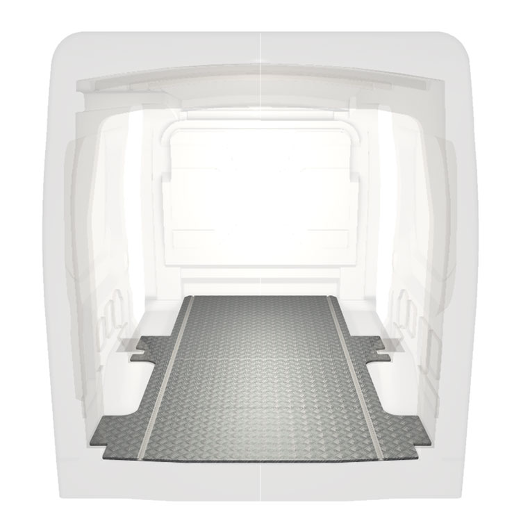 Vores lette og robuste standardgulve til varebiler med skridsikker aluminiumsplade og lastskinner (langsgående) for hurtig og sikker montering af indretningssystemer og andet tilbehør. Gulvet installeres med stærkt klæbende lim, hvilket giver en mere robust installation end ved brug af møtrikker og bolte. Desuden beskytter denne metode også køretøjets restværdi, da den ikke kræver boring, hvilket også eliminerer risikoen for korrosion.
