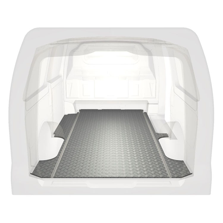Vores lette og robuste standardgulve til varebiler med skridsikker aluminiumsplade og lastskinner (langsgående) for hurtig og sikker montering af indretningssystemer og andet tilbehør. Gulvet installeres med stærkt klæbende lim, hvilket giver en mere robust installation end ved brug af møtrikker og bolte. Desuden beskytter denne metode også køretøjets restværdi, da den ikke kræver boring, hvilket også eliminerer risikoen for korrosion.