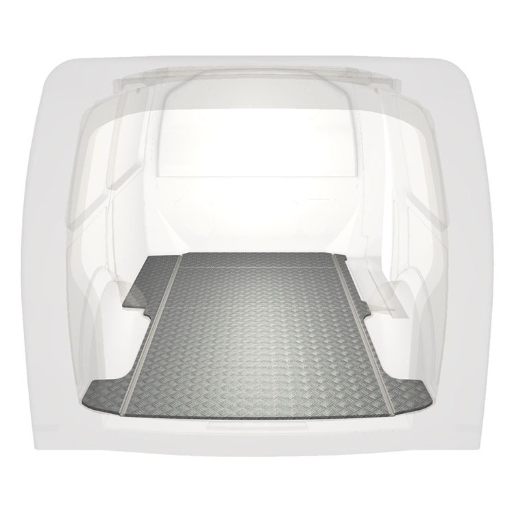 Vores lette og robuste standardgulve til varebiler med skridsikker aluminiumsplade og lastskinner (langsgående) for hurtig og sikker montering af indretningssystemer og andet tilbehør. Gulvet installeres med stærkt klæbende lim, hvilket giver en mere robust installation end ved brug af møtrikker og bolte. Desuden beskytter denne metode også køretøjets restværdi, da den ikke kræver boring, hvilket også eliminerer risikoen for korrosion.