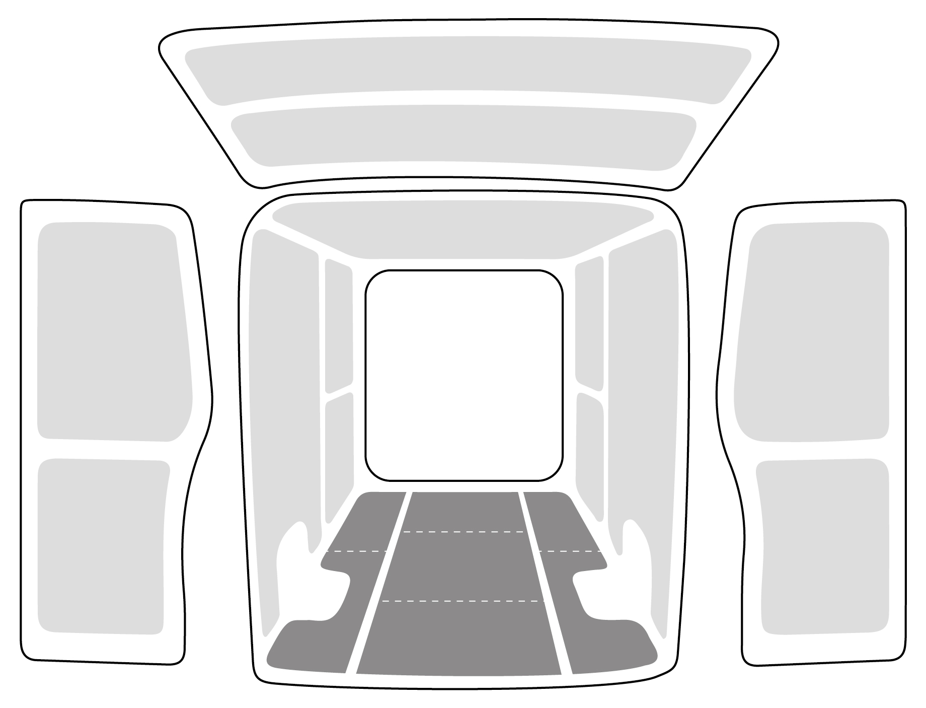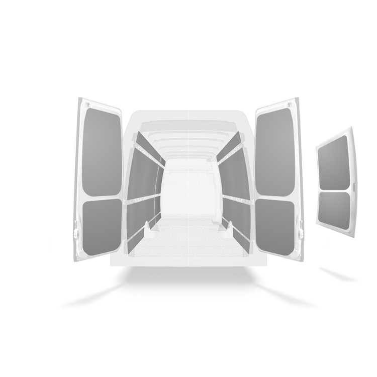 Bemærk også, at det monteringsmateriale, der følger med hvert sæt, er beregnet til montering på karosseriet. Beslag til ikke indgribende installationsmetode i gulv og vægskinner leveres separat.