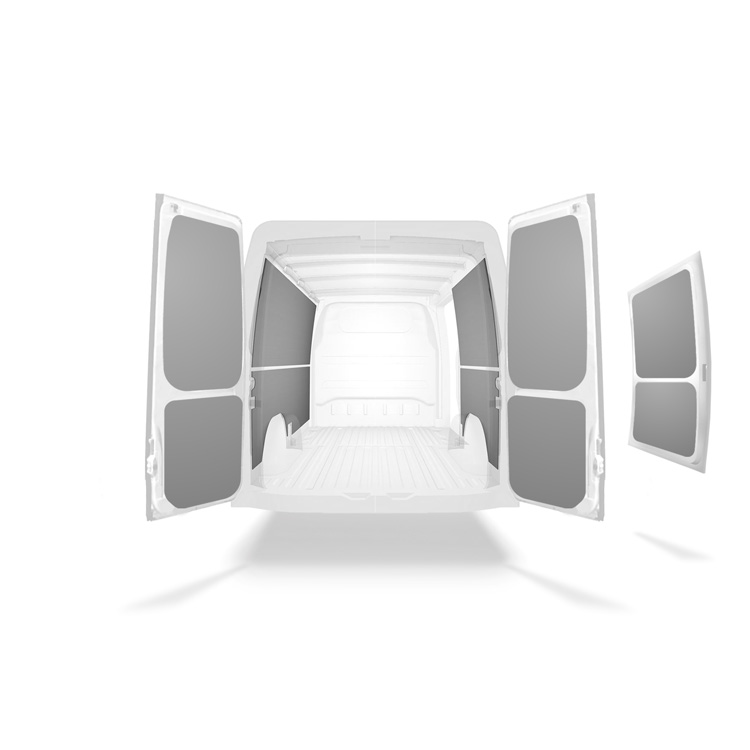 Bemærk også, at det monteringsmateriale, der følger med hvert sæt, er beregnet til montering på karosseriet. Beslag til ikke indgribende installationsmetode i gulv og vægskinner leveres separat.