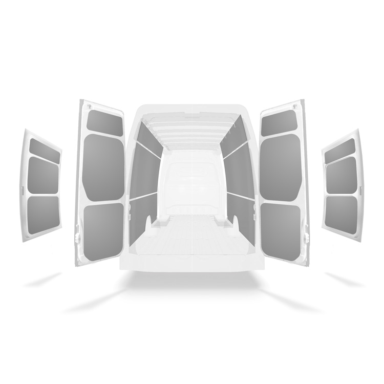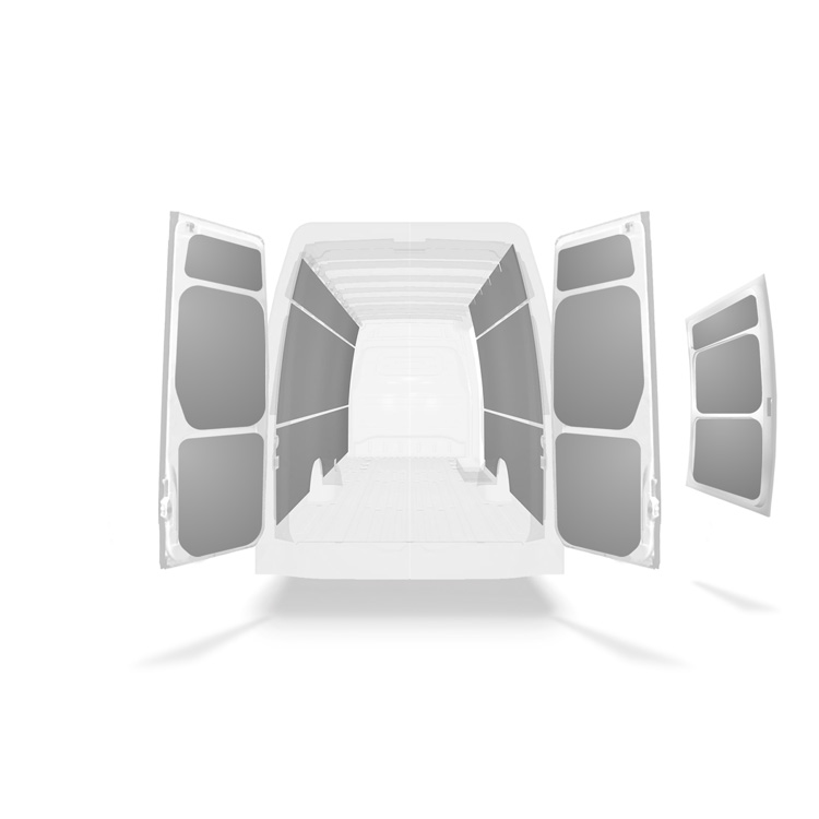 Bemærk også, at det monteringsmateriale, der følger med hvert sæt, er beregnet til montering på karosseriet. Beslag til ikke indgribende installationsmetode i gulv og vægskinner leveres separat.