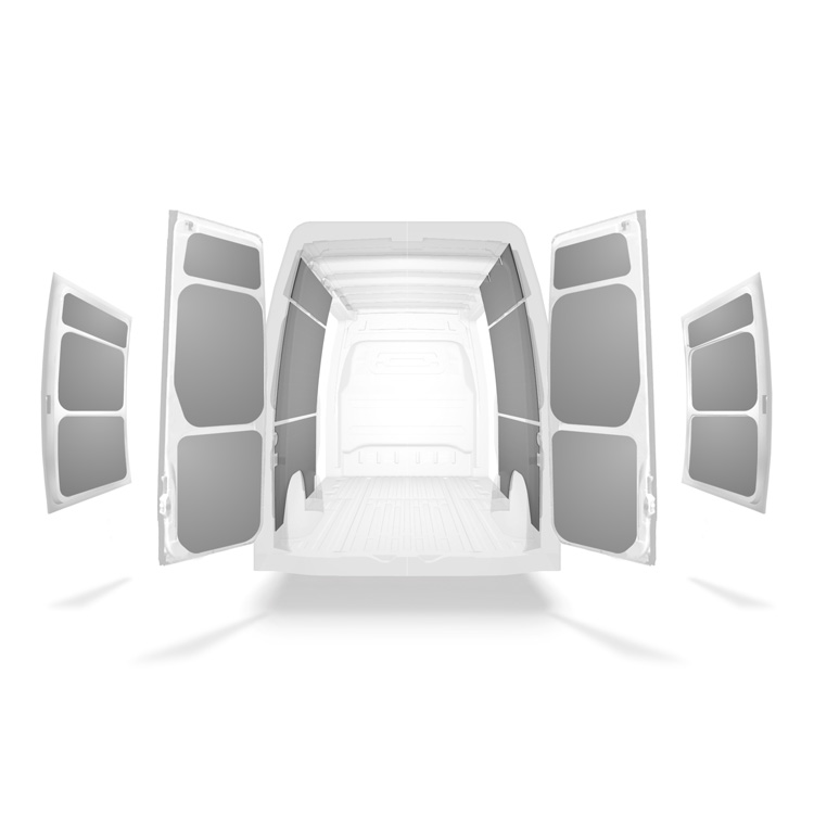 Bemærk også, at det monteringsmateriale, der følger med hvert sæt, er beregnet til montering på karosseriet. Beslag til ikke indgribende installationsmetode i gulv og vægskinner leveres separat.