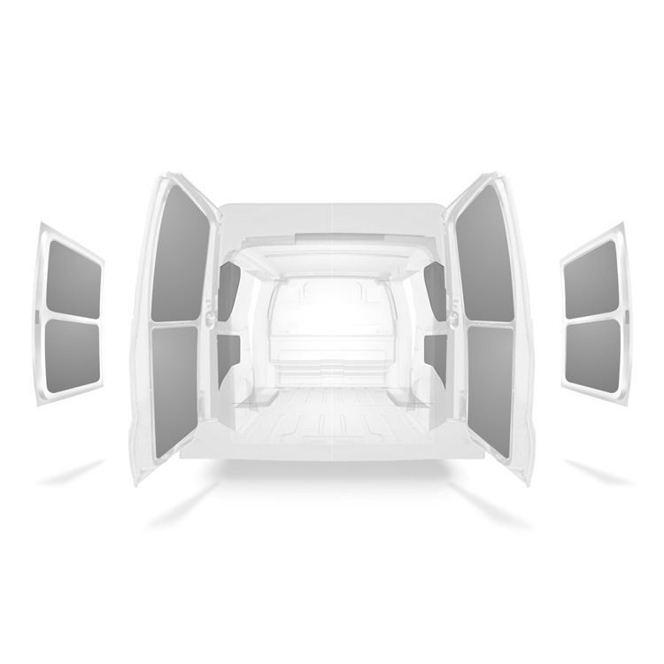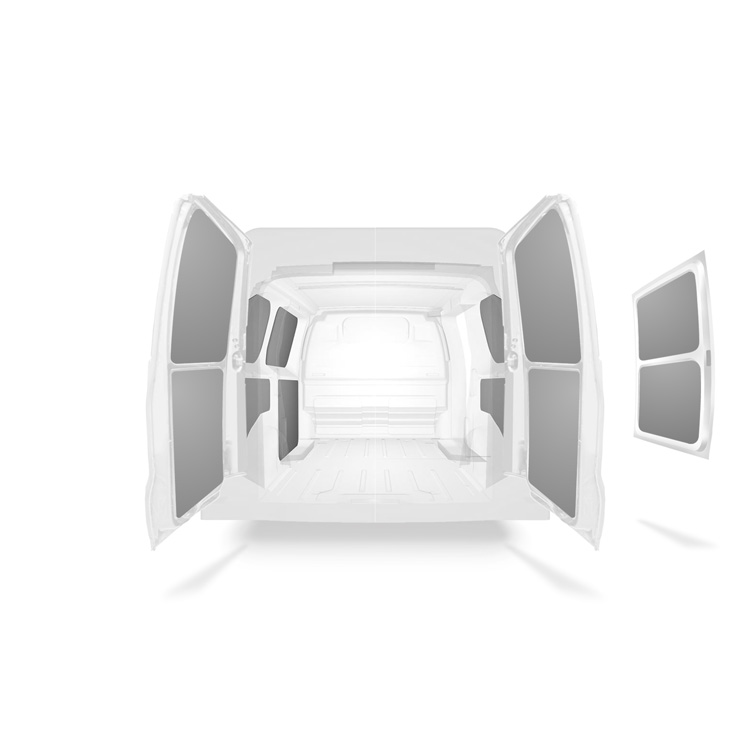 Bemærk også, at det monteringsmateriale, der følger med hvert sæt, er beregnet til montering på karosseriet. Beslag til ikke indgribende installationsmetode i gulv og vægskinner leveres separat.
