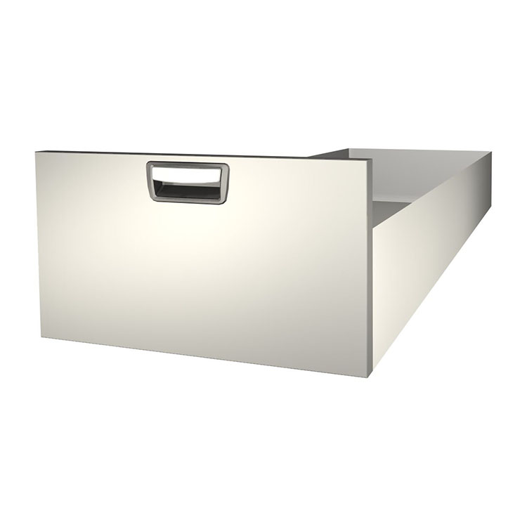 De ekstra lange skuffer er designet til tunge, voluminøse genstande og har en lasteevne på 80 kg pr. skuffe med et maksimum på 200 kg pr. skuffeenhed. Hvis der bruges gummibeklædte indlægsplader, øges lasteevnen til 100 kg pr. skuffe. Skufferne kan trækkes ca. 80 procent ud og fås i dybder på op til 2 m. Du kan frit kombinere dem, så de passer perfekt til din last og dit køretøj. Skufferne er som standard udstyret med kuglelejer og CRP (Crash Restraint Panel). Sidstnævnte forhindrer, at tung last kastes fremad i tilfælde af en ulykke.
