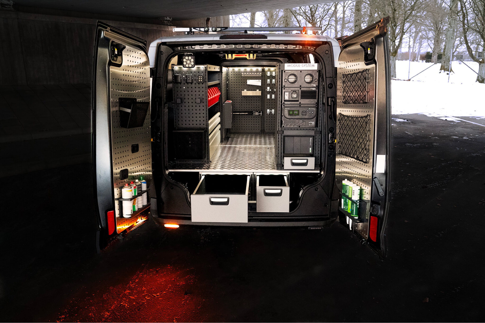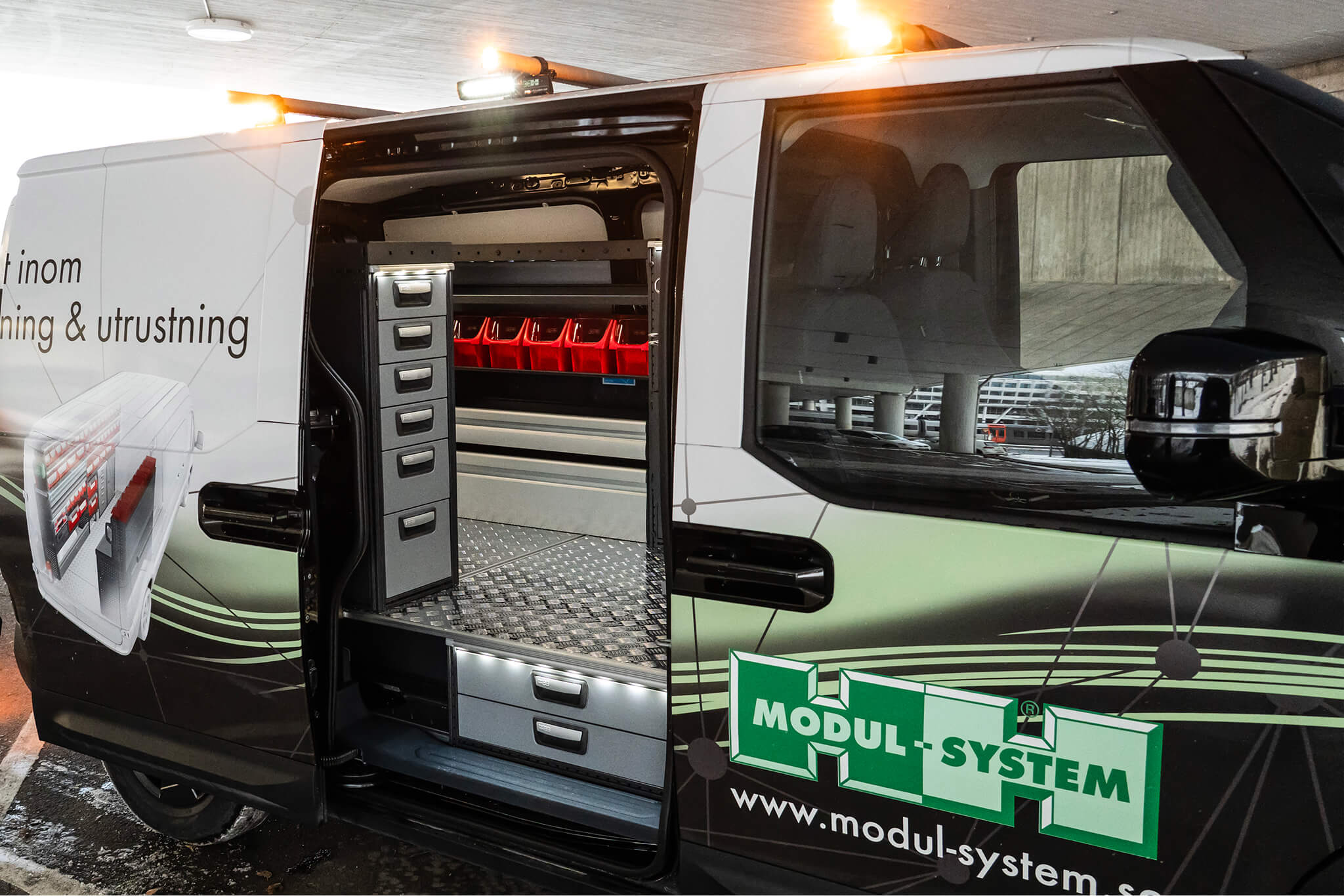 Vores modulære indretningssystem er designet til at passe perfekt i dit køretøj, hvilket hjælper dig til at få mest muligt ud af bilens varerum, samt holder værktøj og udstyr organiseret, sikkert og med nem adgang. Sammen med vores forskellige gulvløsninger, og praktiske tagbøjler, er det nemt at bygge en komplet skræddersyet løsning, der passer til din hverdag.
