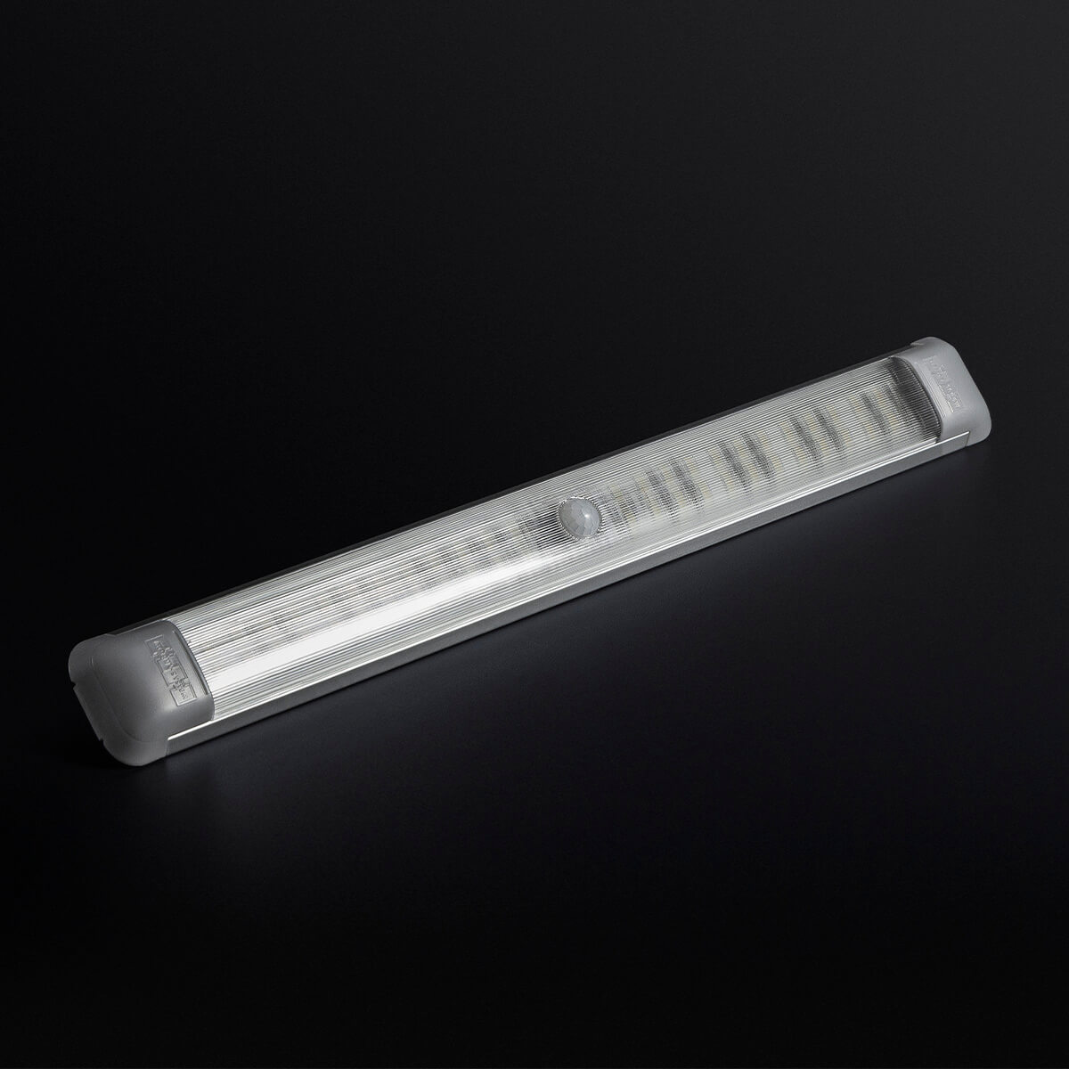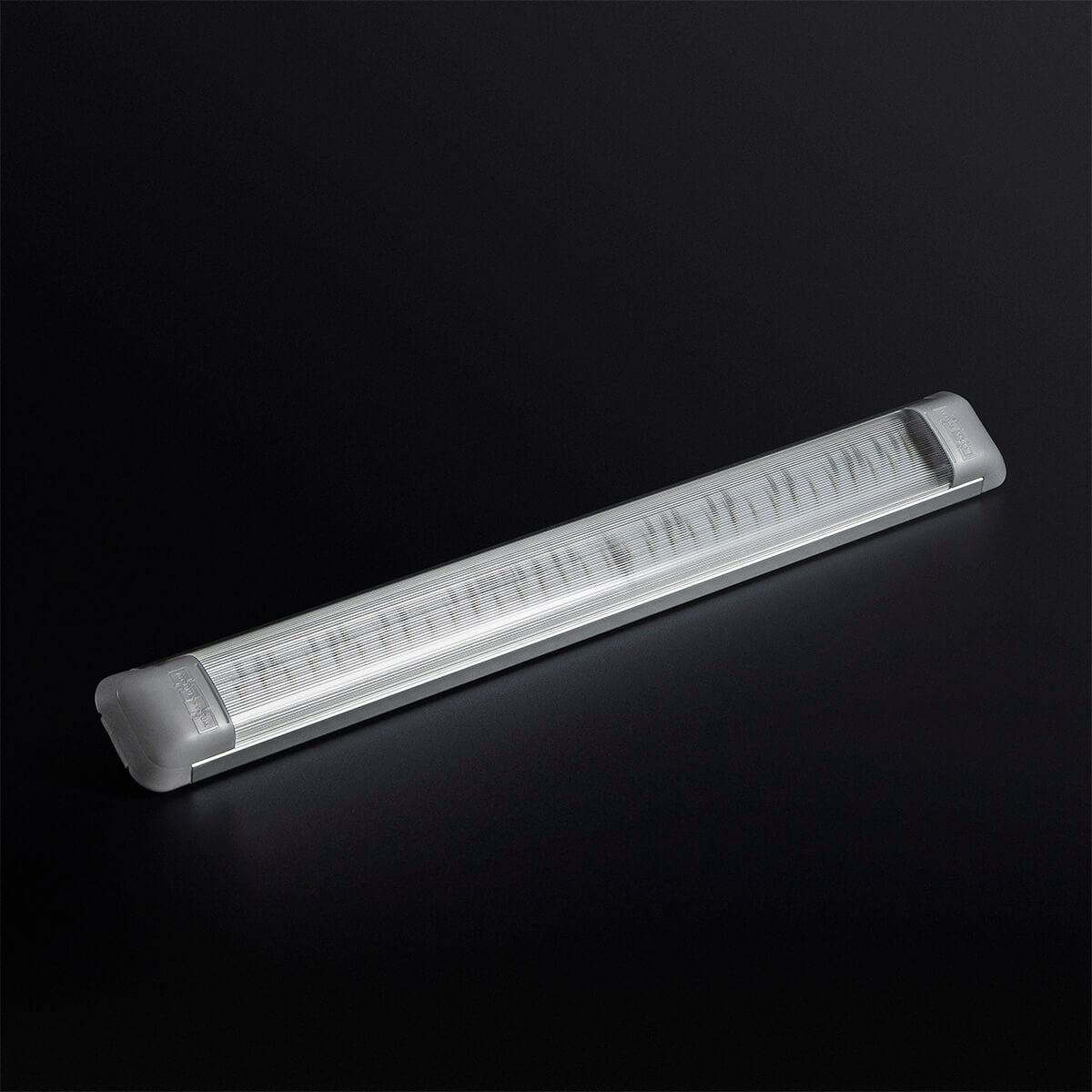 Robust LED-lampe med skinne af aluminium og lampeglas af polykarbonat. Monteres nemt i loftet eller over et arbejdsbord med skruer/nitter eller dobbeltklæbende tape.