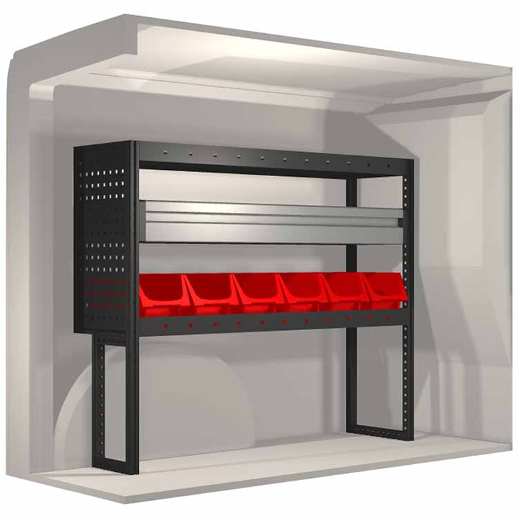 Indretningsforslaget er specielt designet til at passe valgte bilmodel perfekt. For øget funktionalitet og reduceret støj under kørslen er alle hylder udstyret med gummimåtter og skuffer med skum. Monteringssæt medfølger.