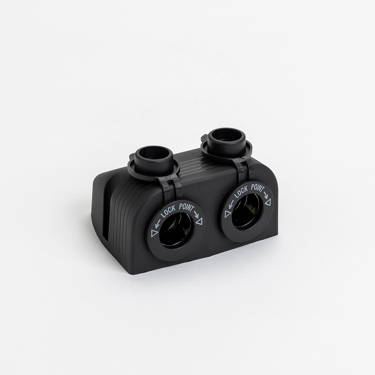 12V double power socket with surface mounted housing. Comprises of two power sockets.