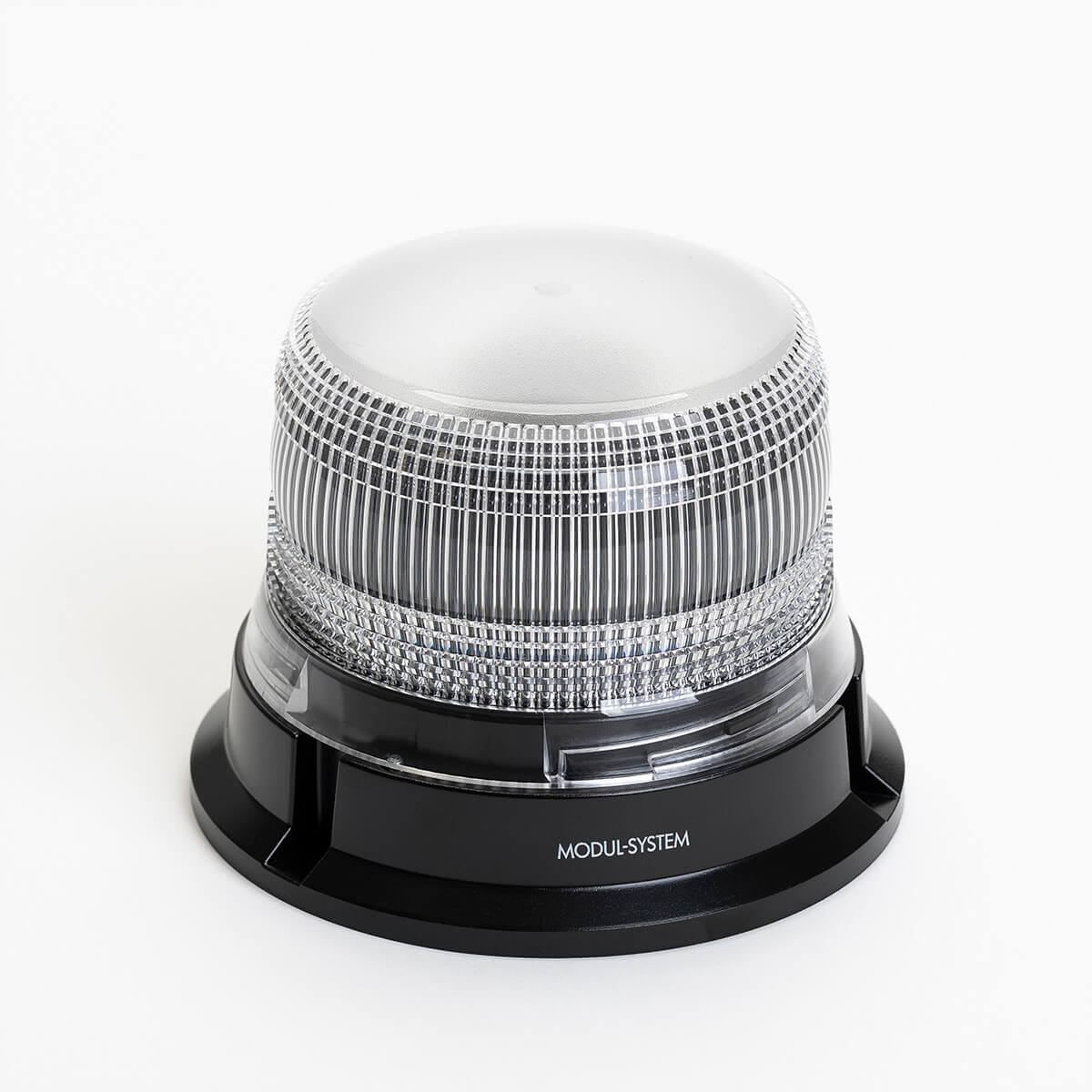 LED-blinklampe i høj kvalitet med trepunktsmontering på taget af køretøjet. Blinklampeadaptere (fås separat) muliggør etpunktsmontering eller montering på tagstativ.