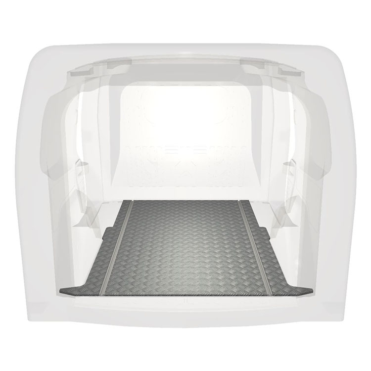 Lette og robuste ekstra lange gulve til en Opel Combo / Fiat Doblò med skridsikker aluminiumsplade og lastskinner (langsgående) for hurtig og sikker installation af indretningssystemer og andet tilbehør.