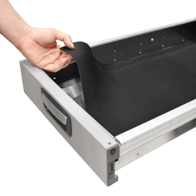 Skridsikker, lyddæmpende og stødabsorberende gummimåtte til ekstra lange skuffer. Måtten kan nemt fjernes, når der skal gøres rent. Leveres tilskåret i størrelse.