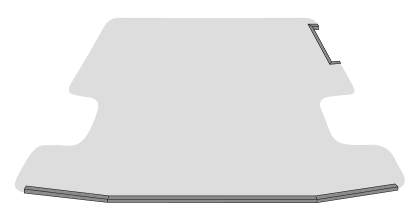 Lette og robuste skræddersyede kantstrimler i aluminium til en Renault Trafic / Opel Vivaro / Fiat Talento / Nissan NV300 med sidedør til højre. Beskytter kanten af Modul-gulvet og gør samtidig adgangen til varebilen mere tilgængelig på grund af det skridsikre materiale.