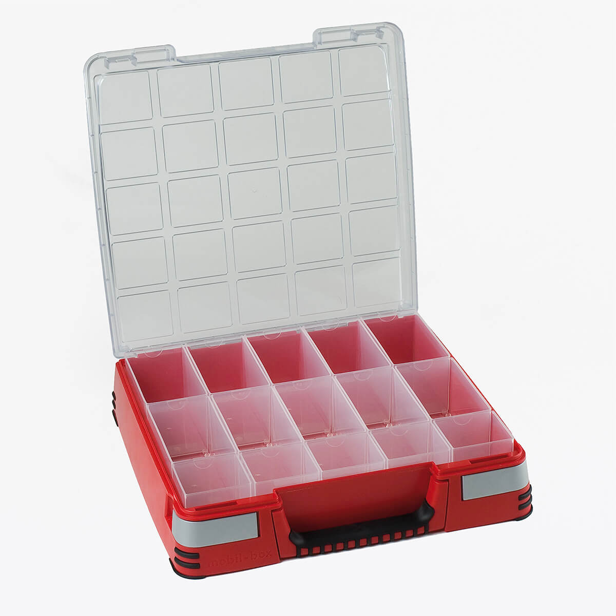 Mobil-Box er en praktisk og mobil opbevaringstaske med et attraktivt design og modulopbyggede indsatsbakker.