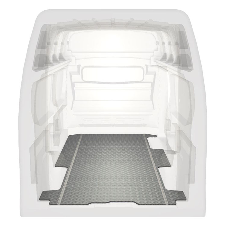 Lette og robuste standardgulve til varebiler til en Renault Trafic / Opel Vivaro / Fiat Talento / Nissan NV300 med skridsikker aluminiumsplade og lastskinner (langsgående) for hurtig og sikker installation af indretningssystemer og andet tilbehør.
