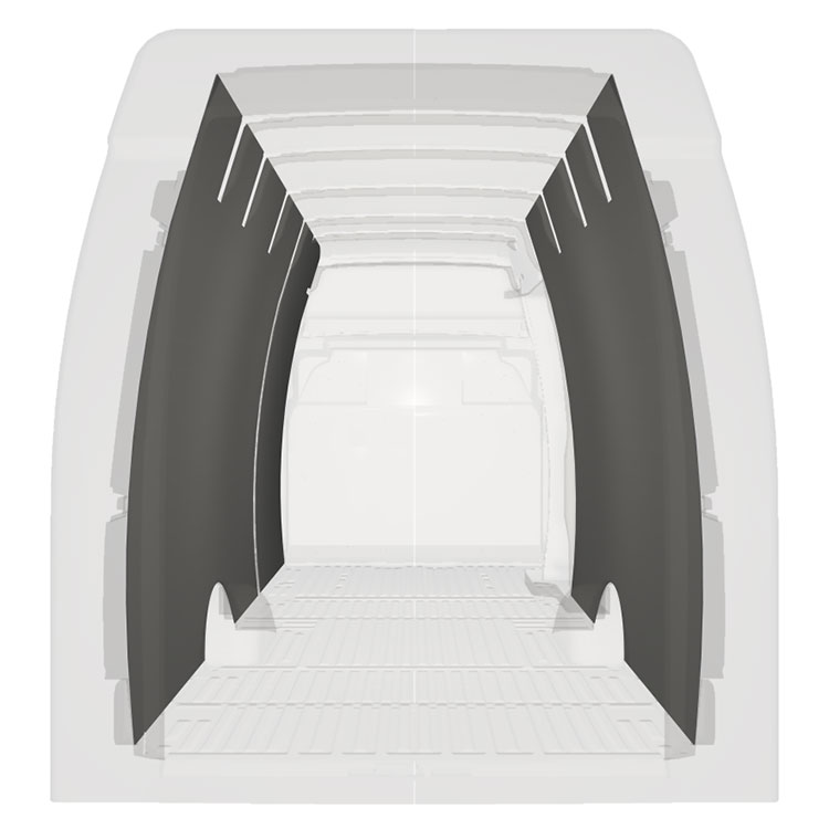 Let komplet beklædning til de indvendige vægge i en Iveco Daily med en sidedør til højre.Beklædningen skaber et lyst og behageligt arbejdsmiljø og er nem at rengøre.