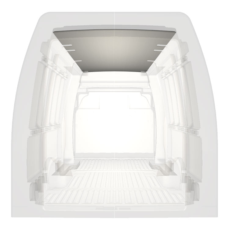 Let beklædning til taget på en Iveco Daily. Tagbeklædningen vil skabe en lys professionel finish indvendigt og et behageligt arbejdsmiljø.