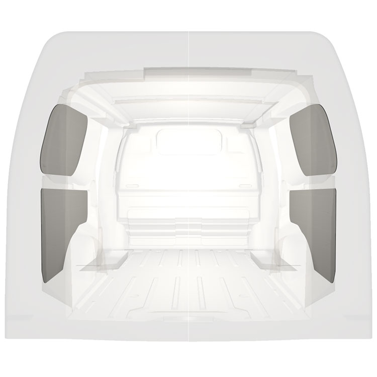 Let færdiglavet beklædning til de indvendige vægge af en Citroën Jumpy / Peugeot Expert / Toyota ProAce ned dobbelte sidedøre. Beklædningen skaber et lyst og behageligt arbejdsmiljø og er nem at rengøre.
