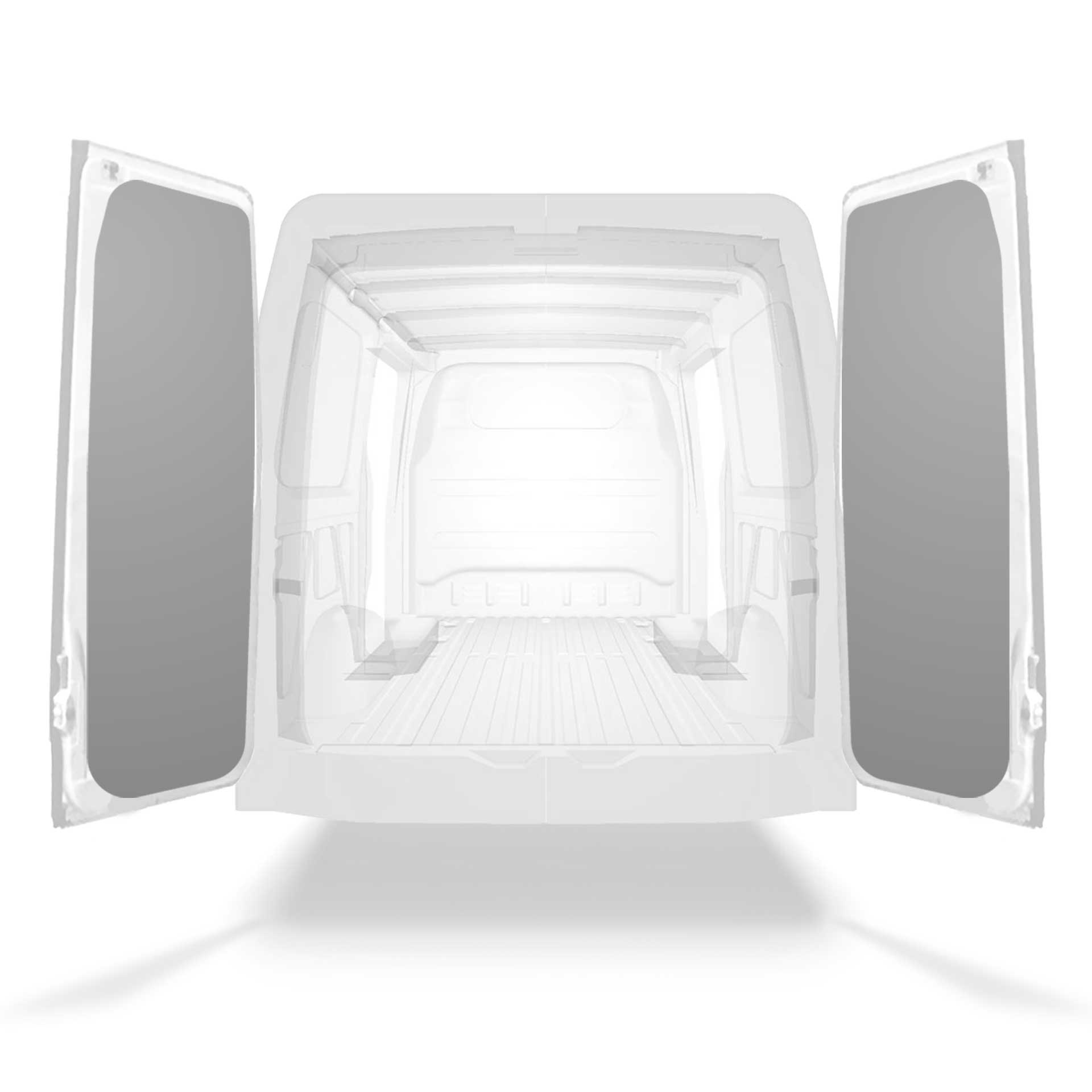 Let komplet beklædning til bagdør til en Mercedes Sprinter med dobbelte døre. Dørbeklædningen er designet til at skabe en professionel finish på indersiden og vil desuden beskytte varebilen og lette rengøringen.