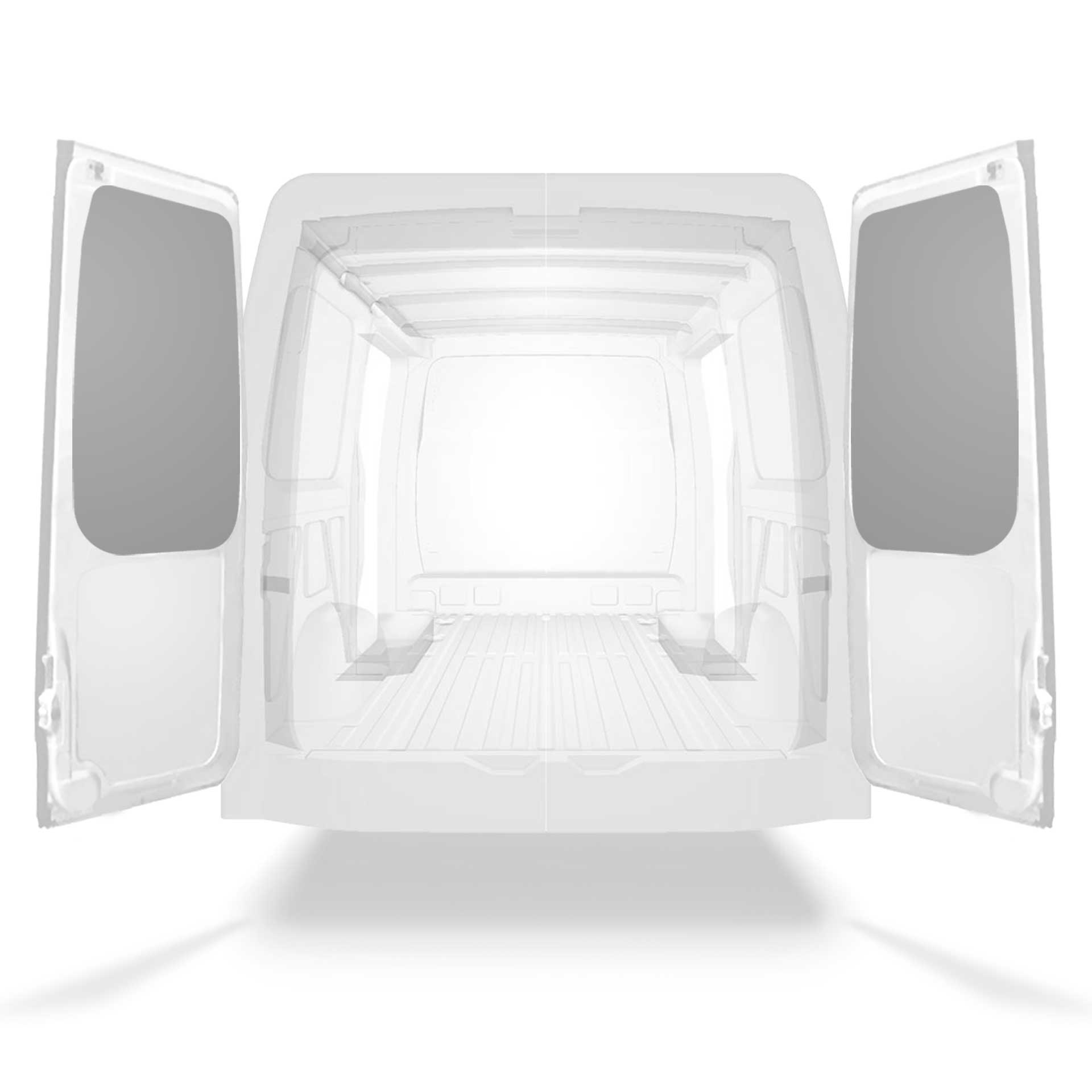 Let panelbeklædning til den øvre del af en Mercedes Sprinter med dobbelte døre. Dørbeklædningen er designet til at skabe en professionel finish på indersiden og vil desuden beskytte varebilen og lette rengøringen.