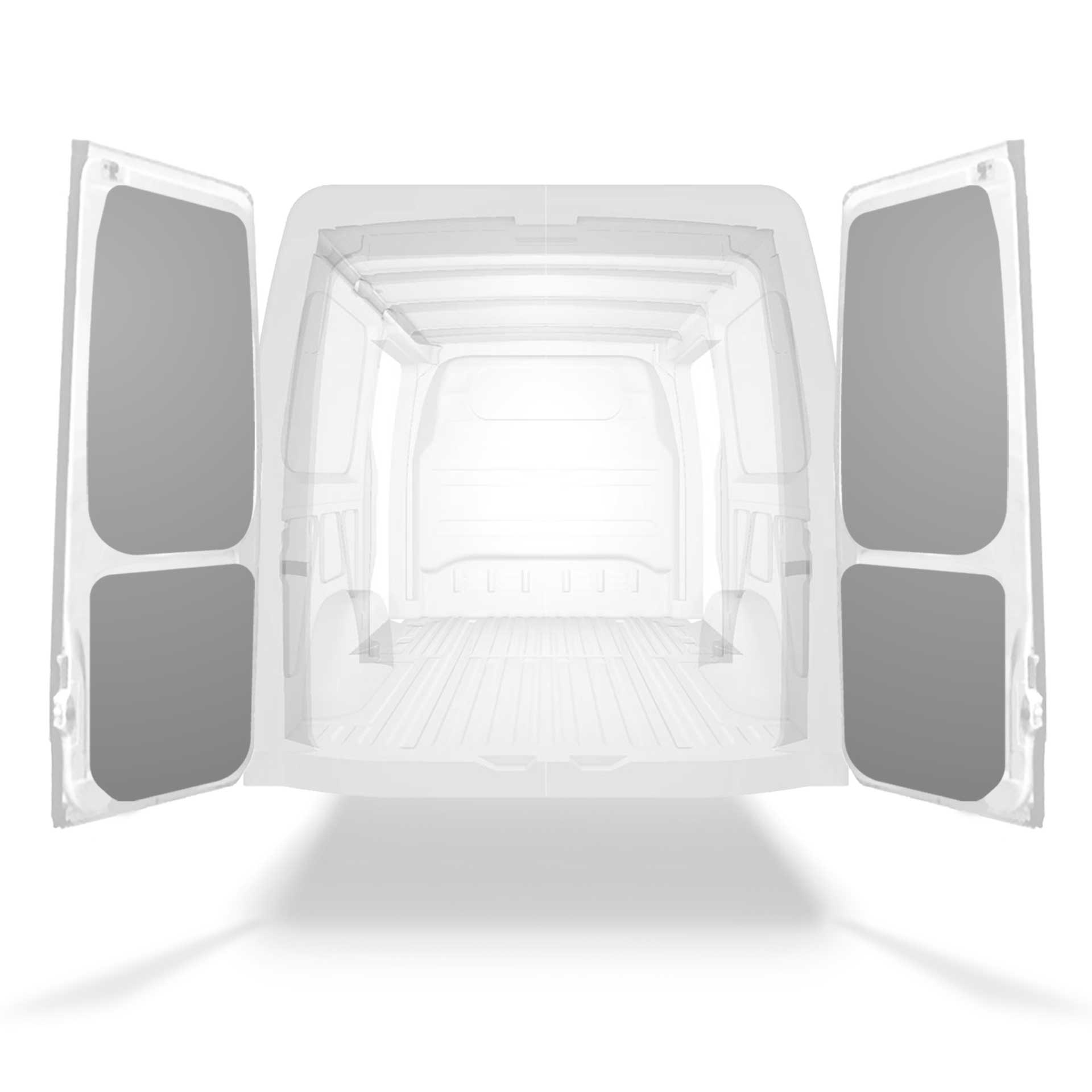 Let beklædning til bagdøren på en Mercedes Sprinter med dobbelte døre. Dørbeklædningen er designet til at skabe en professionel finish på indersiden og vil desuden beskytte varebilen og lette rengøringen.