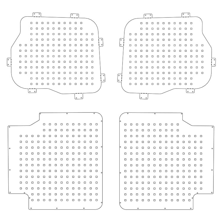 Designed to cover the upper and lower section of the rear doors separately, these tool boards create an efficient storage space for tools and other equipment.