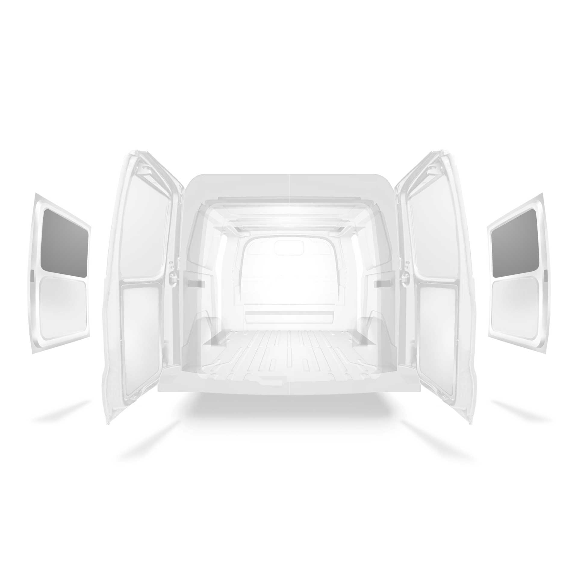 Let beklædning til den øvre del af sidedøren i en Ford Transit Custom med dobbelte sidedøre. Beklædningen reducerer slid på indersiden og hjælper med at beskytte varebilens restværdi.