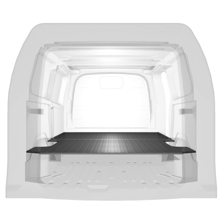 The kit is designed to be fitted on top of a Modul-Floor, utilizing the floor rails for a non-intrusive installation. The double floor is equipped with rails for easy installation of vehicle racking, and edging strips for a nice finish.
