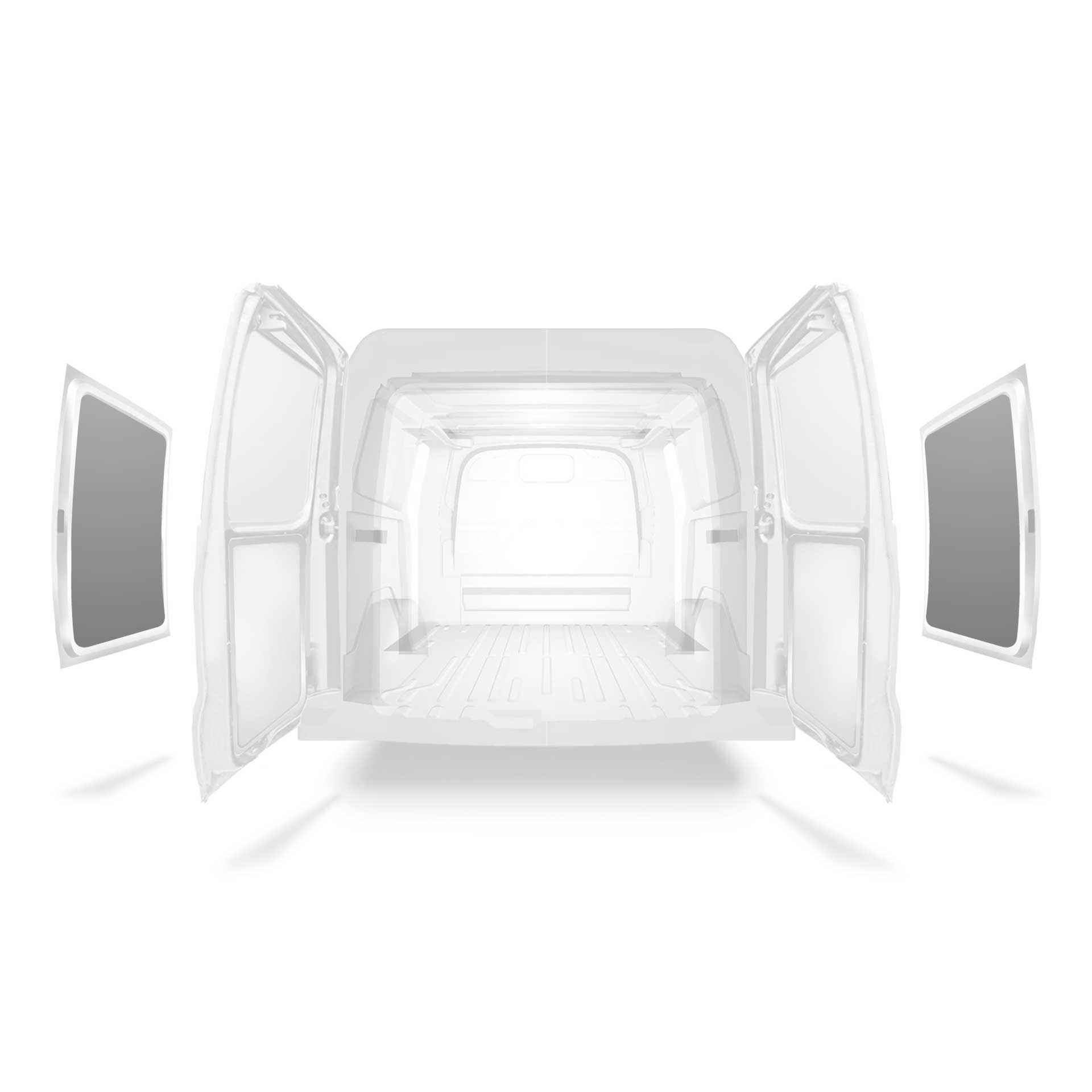 Let helbeklædning til sidedøren på en Ford Transit Custom med dobbelte sidedøre. Beklædningen beskytter indersiden af døren og er let at rengøre.