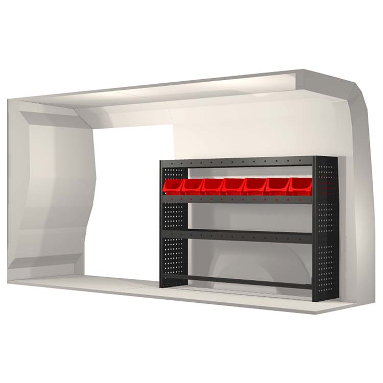 Indretningsforslaget er specielt designet til at passe valgte bilmodel perfekt. For øget funktionalitet og reduceret støj under kørslen er alle hylder udstyret med gummimåtter og skuffer med skum. Monteringssæt medfølger.