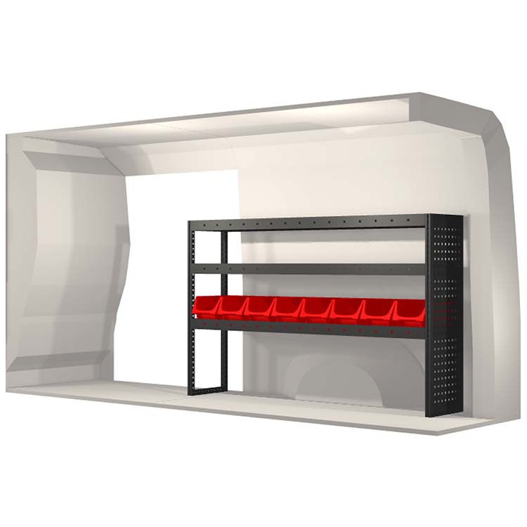 Indretningsforslaget er specielt designet til at passe valgte bilmodel perfekt. For øget funktionalitet og reduceret støj under kørslen er alle hylder udstyret med gummimåtter og skuffer med skum. Monteringssæt medfølger.