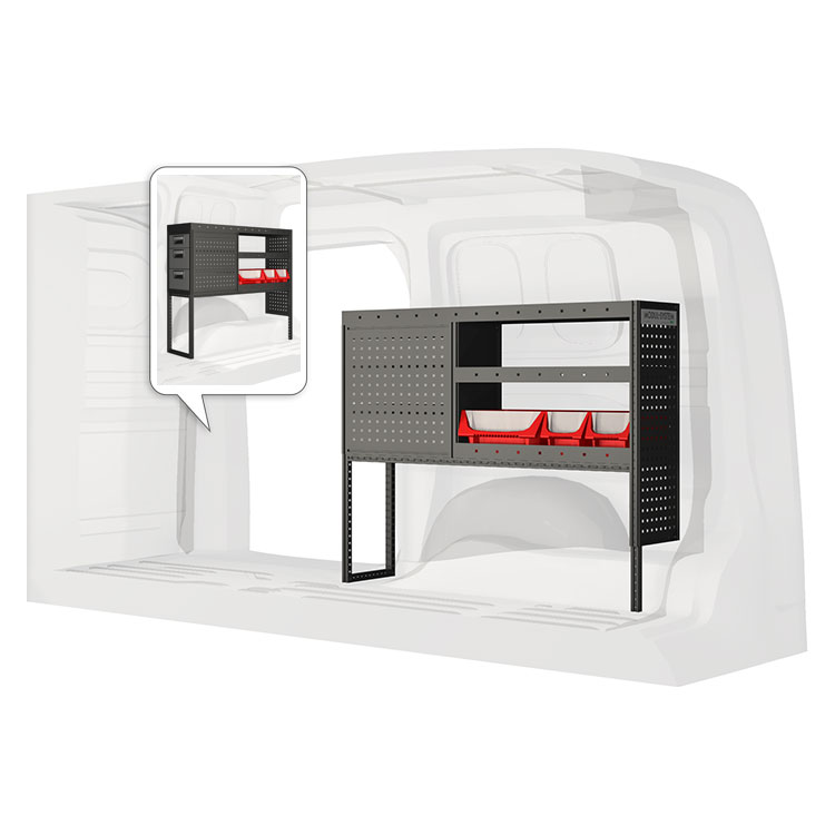 Indretningsforslaget er specielt designet til at passe perfekt til den valgte bilmodel og sikre den bedst mulige funktionalitet og sikkerhed. Det er udviklet til professionel brug, er fleksibelt og egnet til serviceopgaver i forskellige typer virksomheder. For øget funktionalitet og reduceret støj under kørslen er alle hylder udstyret med gummimåtter, og skufferne har skumindlæg.
