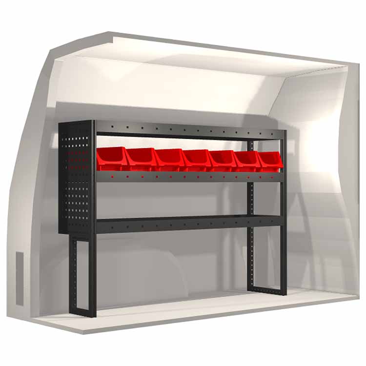 Indretningsforslaget er specielt designet til at passe valgte bilmodel perfekt. For øget funktionalitet og reduceret støj under kørslen er alle hylder udstyret med gummimåtter og skuffer med skum. Monteringssæt medfølger.