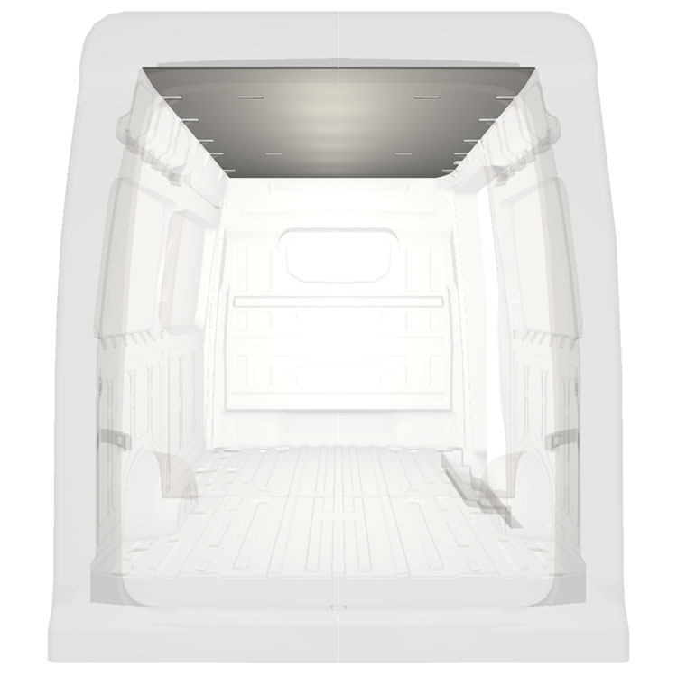 Let beklædning til taget på en Volkswagen Crafter / MAN TGE . Tagbeklædningen vil skabe en lys professionel finish indvendigt og et behageligt arbejdsmiljø.