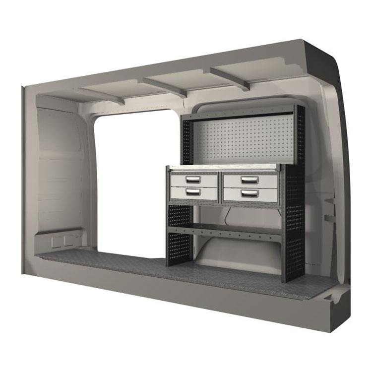 Indretningsforslaget er specielt designet til at passe valgte bilmodel perfekt. For øget funktionalitet og reduceret støj under kørslen er alle hylder udstyret med gummimåtter og skuffer med skum. Monteringssæt medfølger.