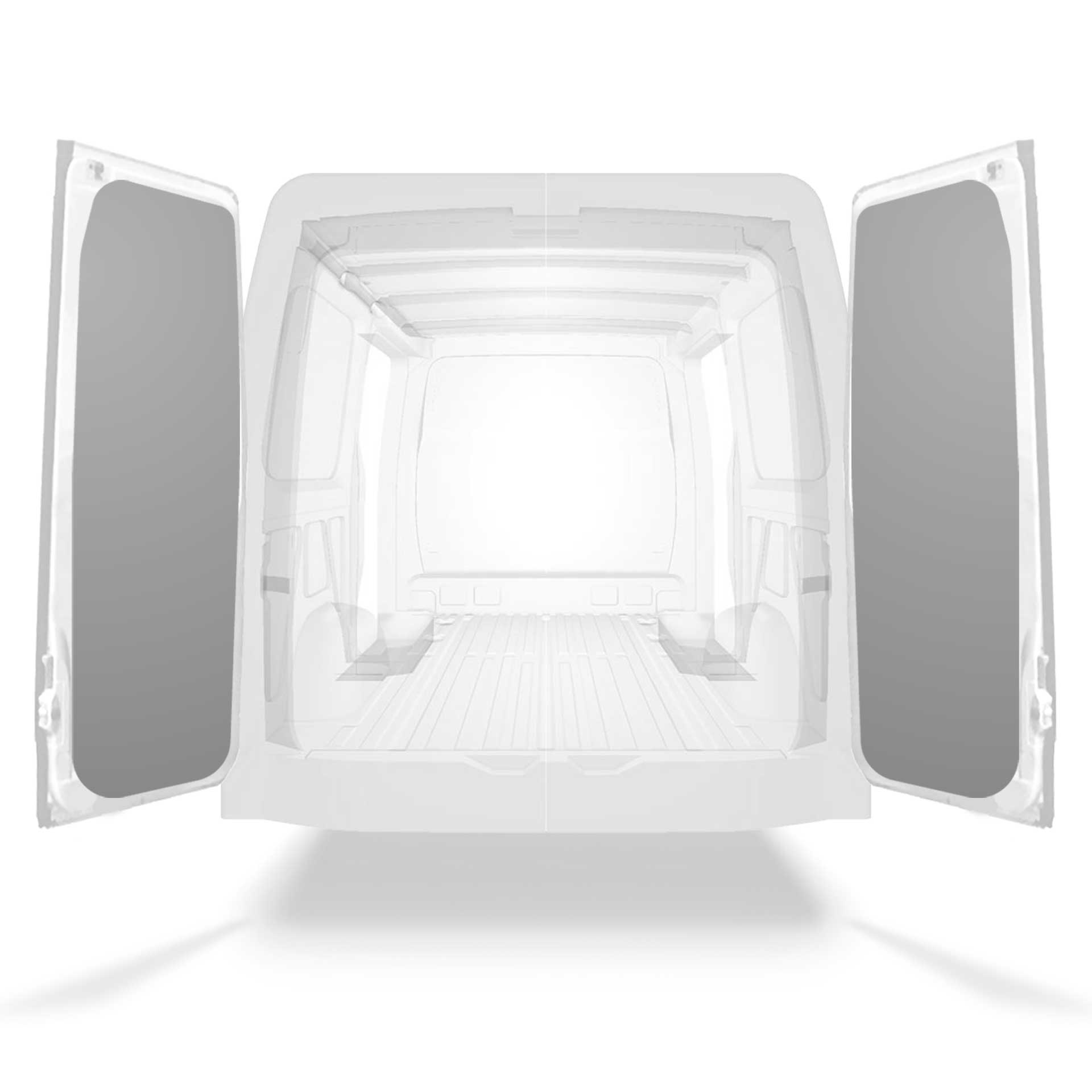 Let komplet beklædning til bagdør til en Mercedes Sprinter med dobbelte døre. Dørbeklædningen er designet til at skabe en professionel finish på indersiden og vil desuden beskytte varebilen og lette rengøringen.
