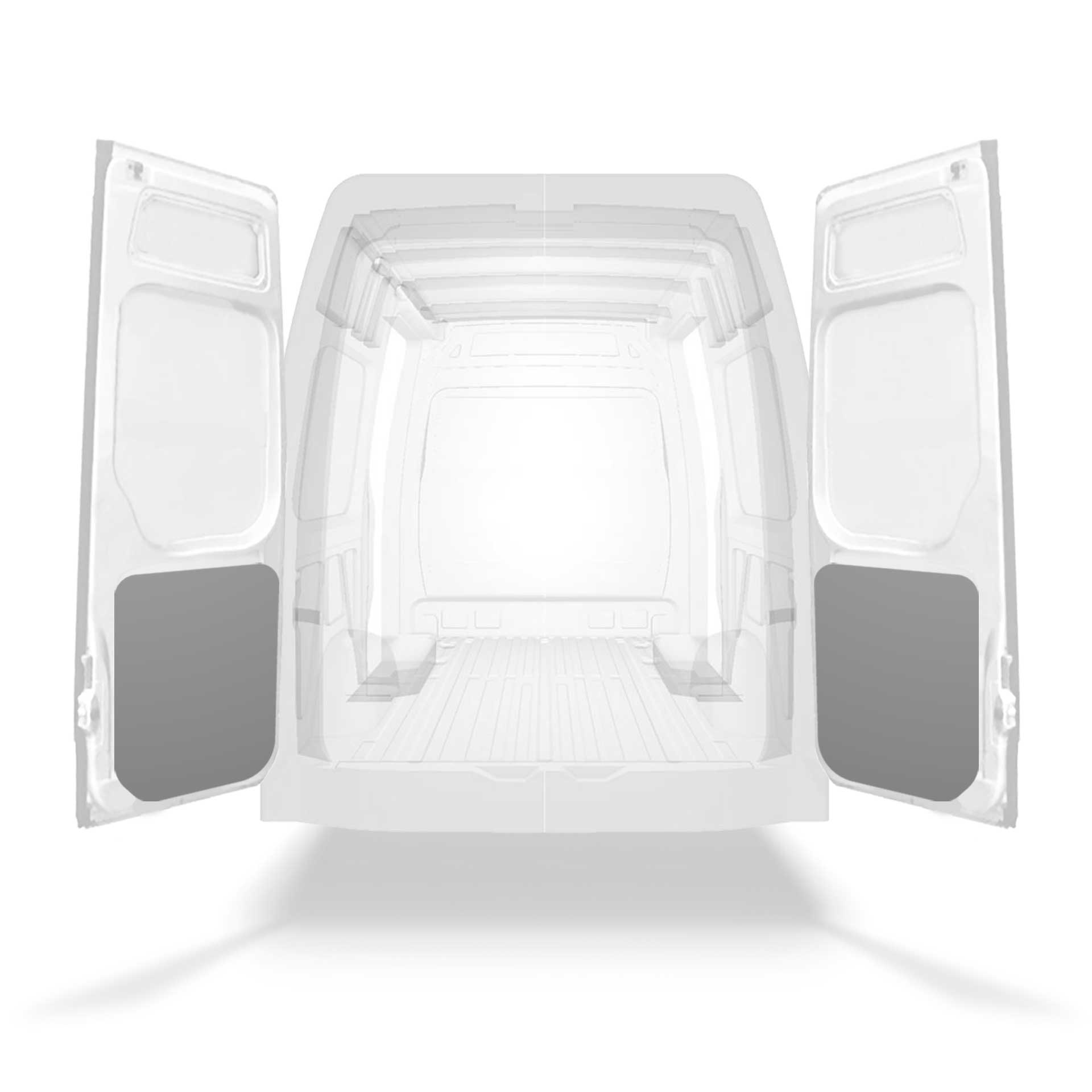 Let panelbeklædning til den nedre del af en Mercedes Sprinter med dobbelte døre. Dørbeklædningen er designet til at skabe en professionel finish på indersiden og vil desuden beskytte varebilen og lette rengøringen.