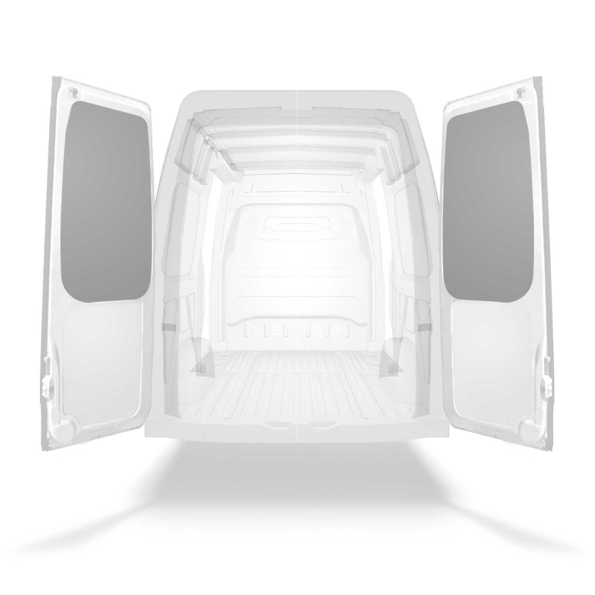 Let panelbeklædning til den øvre del af en Mercedes Sprinter med dobbelte døre. Dørbeklædningen er designet til at skabe en professionel finish på indersiden og vil desuden beskytte varebilen og lette rengøringen.