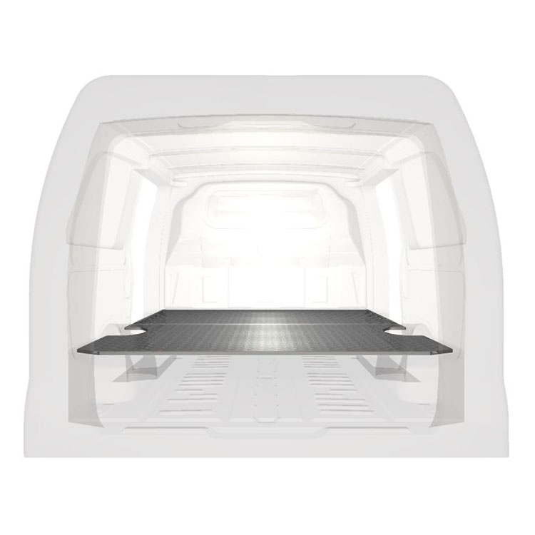 The kit is designed to be fitted on top of a wooden floor. The double floor is equipped with rails for easy installation of vehicle racking, and edging strips for a nice finish.