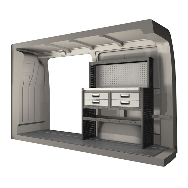 Indretningsforslaget er specielt designet til at passe valgte bilmodel perfekt. For øget funktionalitet og reduceret støj under kørslen er alle hylder udstyret med gummimåtter og skuffer med skum. Monteringssæt medfølger.