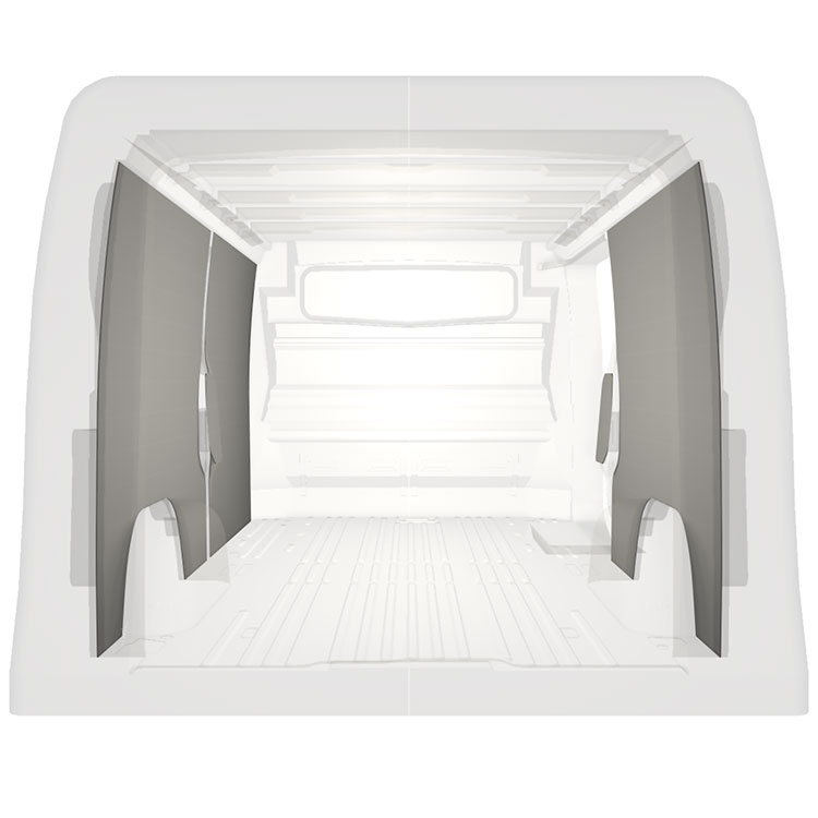 Let komplet beklædning til de indvendige vægge i en Renault Trafic / Opel Vivaro / Fiat Talento / Nissan NV300 med en sidedør til højre.Beklædningen skaber et lyst og behageligt arbejdsmiljø og er nem at rengøre.