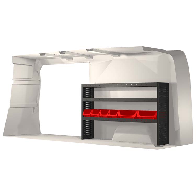Indretningsforslaget er specielt designet til at passe valgte bilmodel perfekt. For øget funktionalitet og reduceret støj under kørslen er alle hylder udstyret med gummimåtter og skuffer med skum. Monteringssæt medfølger.