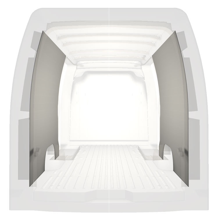 Let komplet beklædning til de indvendige vægge i en Renault Master / Opel Movano / Nissan NV400 med dobbelte sidedøre. Beklædningen skaber et lyst og behageligt arbejdsmiljø og er nem at rengøre.