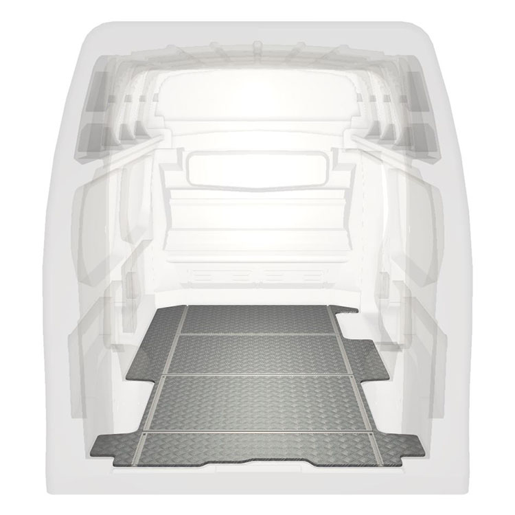 Lette og robuste gulve til varebiler med tværgående skinner til en Renault Trafic / Opel Vivaro / Fiat Talento / Nissan NV300 med skridsikker aluminiumsplade og lastskinner (langsgående og tværgående) for hurtig og sikker installation af indretningssystemer og andet tilbehør.