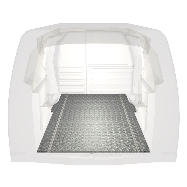 Lette og robuste standardgulve til varebiler til en Citroën Berlingo / Peugeot Partner med skridsikker aluminiumsplade og lastskinner (langsgående) for hurtig og sikker installation af indretningssystemer og andet tilbehør.