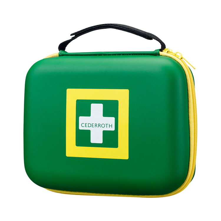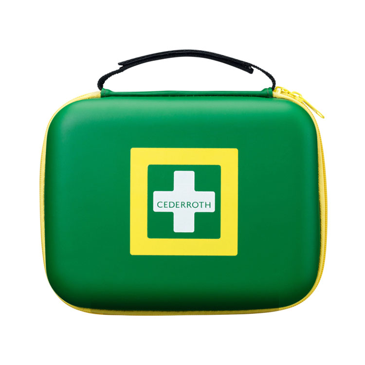En førstehjælpskuffert, som er fremstillet af et slidstærkt gummilignende materiale med mat overflade, der kan holde støv, fugt og snavs ude. Udstyret holdes hygiejnisk rent og er altid klar til brug. Produkterne er pakkede i gennemsigtige plastlommer, som giver et tydeligt overblik og gør det let at finde det rette produkt, når hvert sekund tæller. Alle produkterne er forsynet med tydelige selvforklarende instruktioner. Signalfarverne grønt og gult gør kufferten synlig på lang afstand. Et praktisk håndtag med justerbart burrebånd gør det nemt at fastgøre kufferten eller bære den med sig.