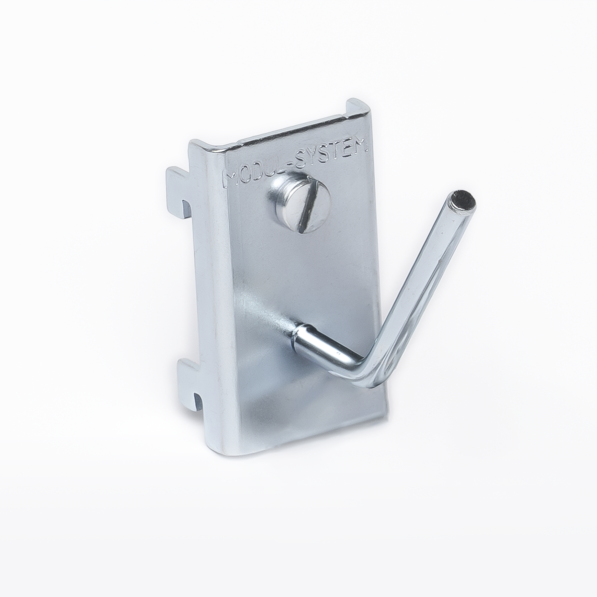 Værktøjsholder, der passer til alle vores værktøjstavler og vægskinner. Holderen har fire særligt designede sikringskroge og låses fast med en stor skrue.