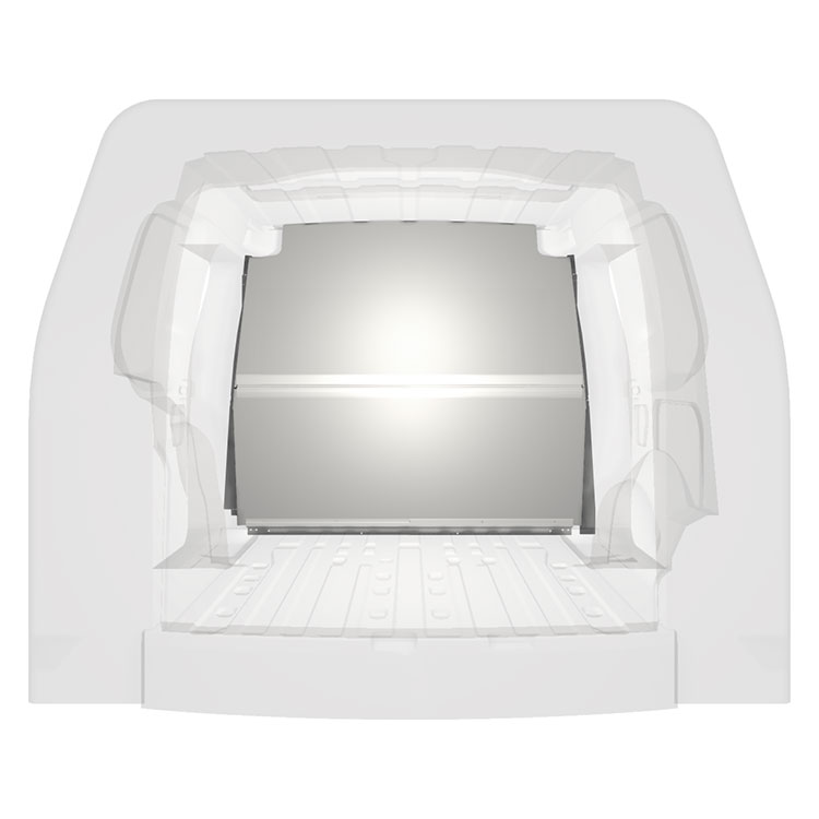 Lightweight, robust and collision safe bulkhead for Caddy Cargo and Caddy Cargo Maxi with a single side door on the right side.