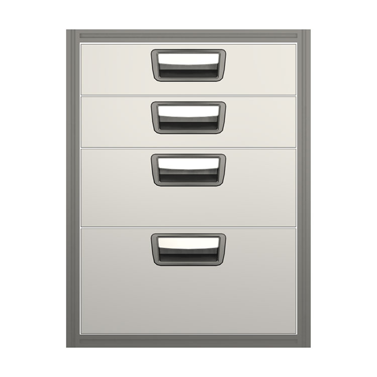 Alle skuffer er som standard udstyret med kuglelejeskinner og har en maksimal belastning på 30 kg pr. skuffe, dog højst 100 kg pr. skuffesektion.